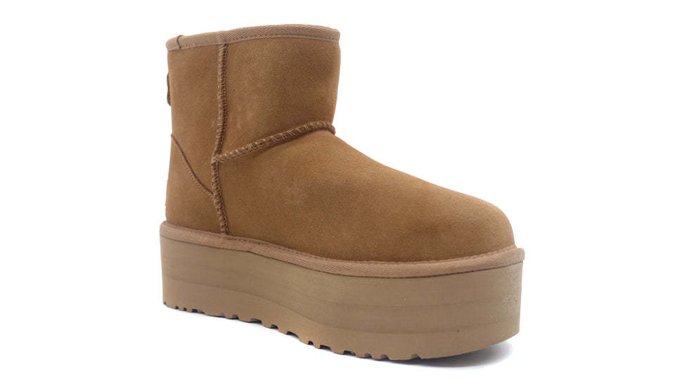 南カリフォルニアを拠点とするグローバルライフスタイルブランド<UGG®(アグ)>発、元々はサーファーたちの足をあたかかく保つために作られた定番ブーツを約5㎝のボリュームソールでアップデートしたクラシック ミニ プラットフォーム。