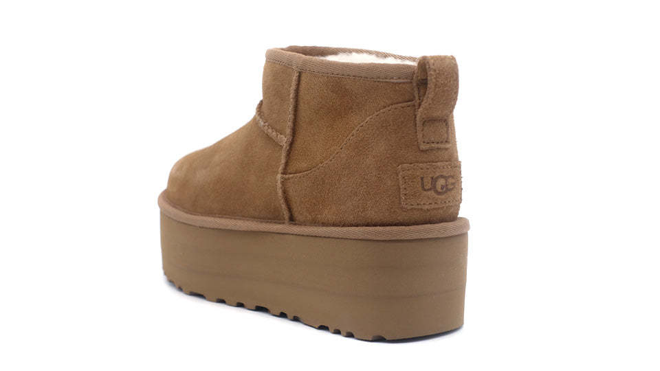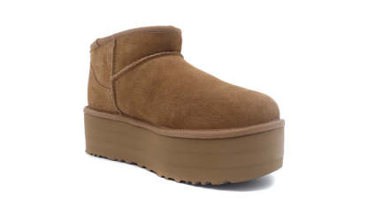 南カリフォルニアを拠点とするグローバルライフスタイルブランド<UGG®(アグ)>発、元々はサーファーたちの足をあたかかく保つために作られた定番ブーツを約5㎝のボリュームソールでアップデートしたクラシック ウルトラ ミニ プラットフォーム。
