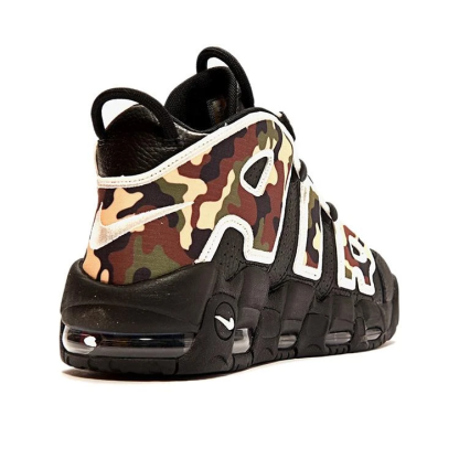 復刻後、世界中で爆発的な人気モデルとなったモアテン。2019ニューカラーの今作はブラックをベースとしたアッパーに、サイドのAIRロゴ部にミリタリーテイストなキャンバスのカモフラ柄を落とし込んだよりインパクトあるデザインになっています。