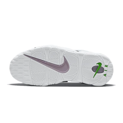 大人気モアテンニューカラー。ブラックカラーのタンブルレザーに、シルバーカラーの「AIR」が映える1足。アクセントにピンクやネオングリーンをエアユニットやスウッシュに配色。